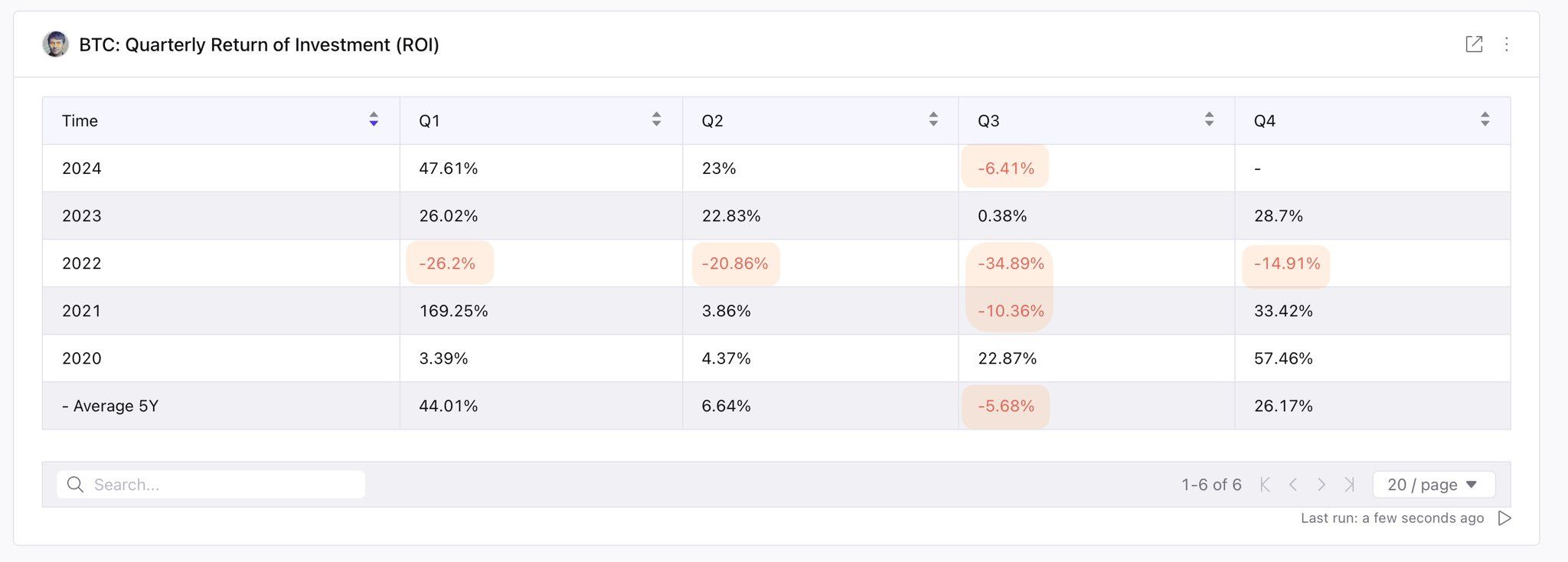 O preço do Bitcoin (BTC) apresentou diferentes níveis de retorno para cada trimestre dos últimos cinco anos. No entanto, um aspecto comum a esses períodos é como a moeda produz um retorno positivo entre outubro e dezembro.