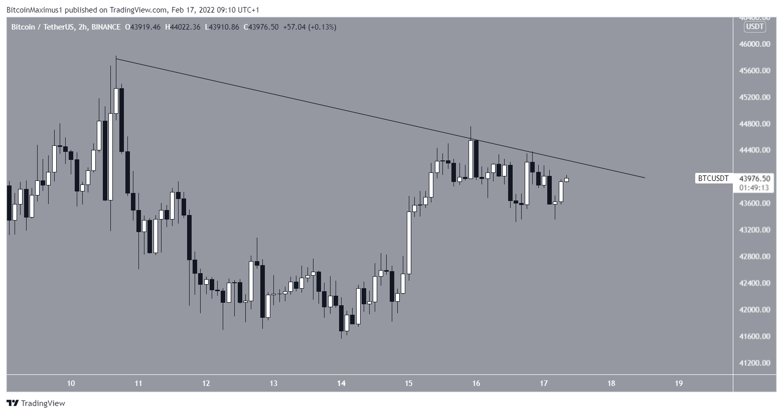 O gráfico de duas horas mostra que o BTC ainda está abaixo de uma linha de tendência de baixa de curto prazo, que até agora foi validada várias vezes. Um rompimento acima dessa linha também causaria um rompimento da área de resistência horizontal mencionada anteriormente.