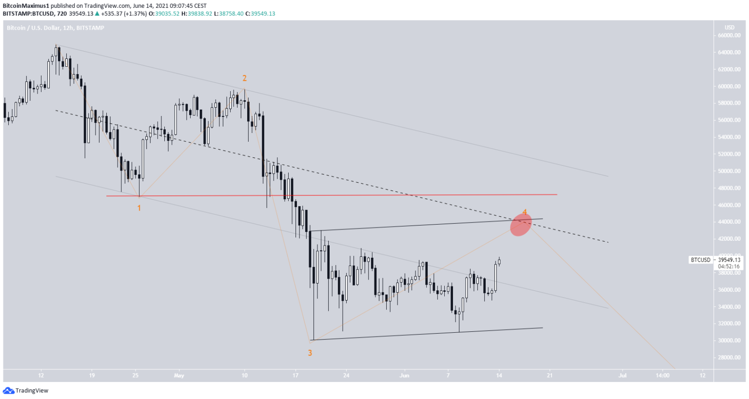 Desde 19 de maio, o BTC tem negociado dentro de um canal paralelo ascendente. Nele, o BTC está potencialmente completando uma estrutura corretiva A-B-C.