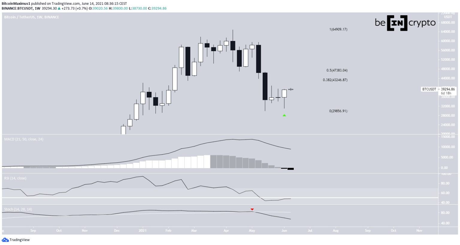 O BTC começou a semana caindo para uma mínima de US$ 31.000. No entanto, ele saltou de volta, deixando um longo pavio inferior e alcançando um fechamento de alta. A alta semanal foi de US$ 39.380.