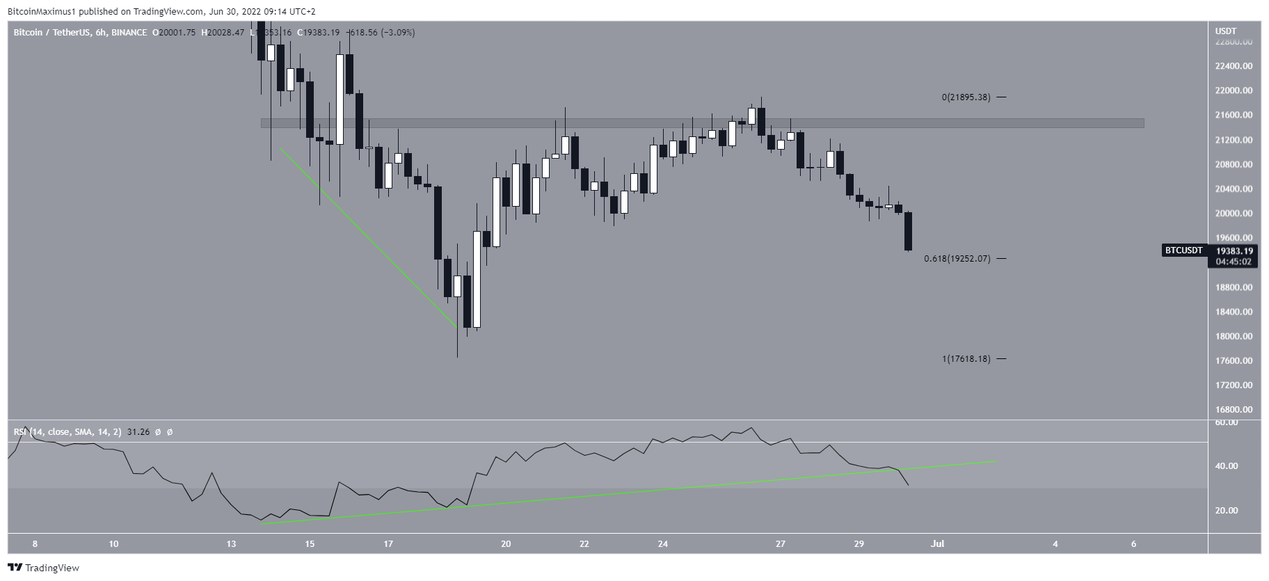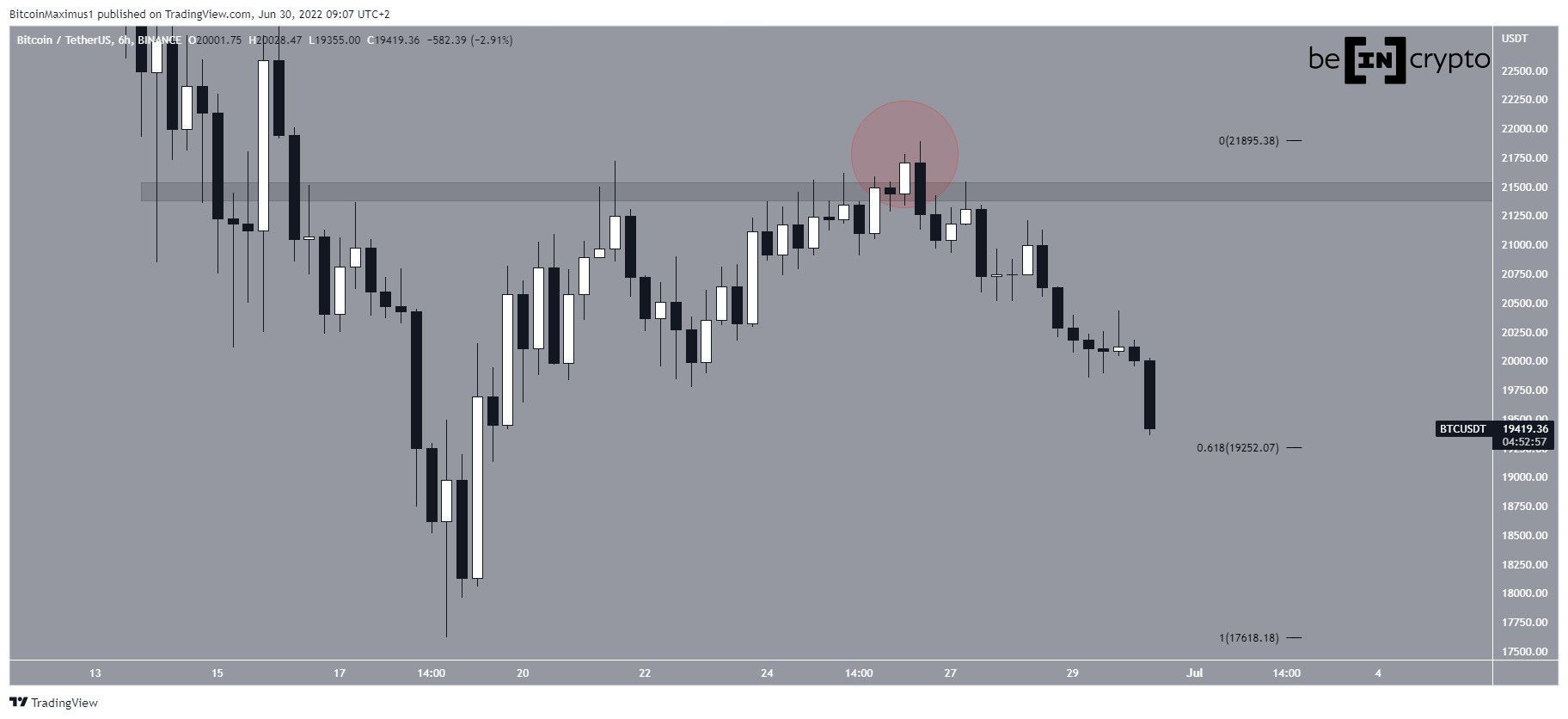 O Bitcoin (BTC) está lutando para encontrar suporte acima do nível de retração de 0,618 de Fibonacci em US$ 19.250. Se não o fizer, seu preço pode atingir uma nova mínima no mês.