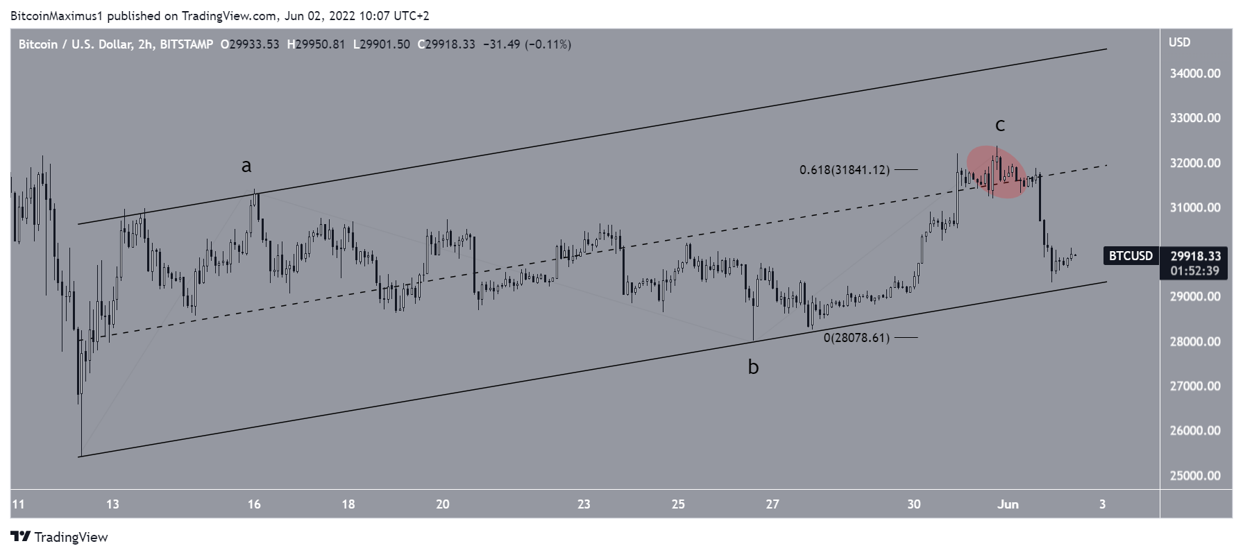 O Bitcoin (BTC) atingiu um topo de US$ 32.399, mas seu preço logo em seguida caiu abaixo de US$ 30.000 mais uma vez.