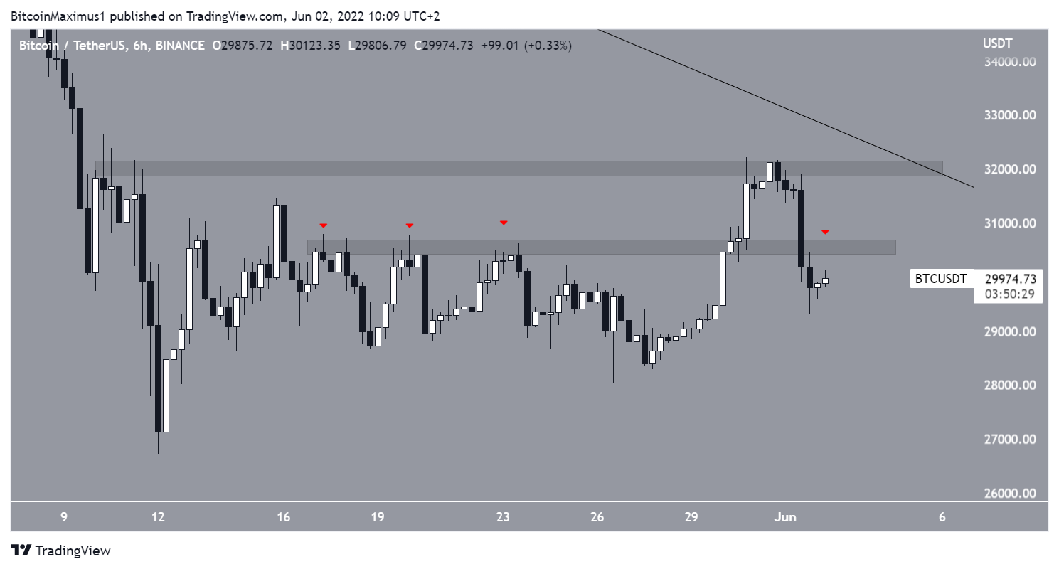 Por outro lado, o gráfico de seis horas é mais pessimista. Após a rejeição acima mencionada, o Bitcoin não conseguiu se manter acima da área de US$ 30.000, que deveria fornecer suporte. A área agora provavelmente atuará como resistência de preço mais uma vez (ícone vermelho).