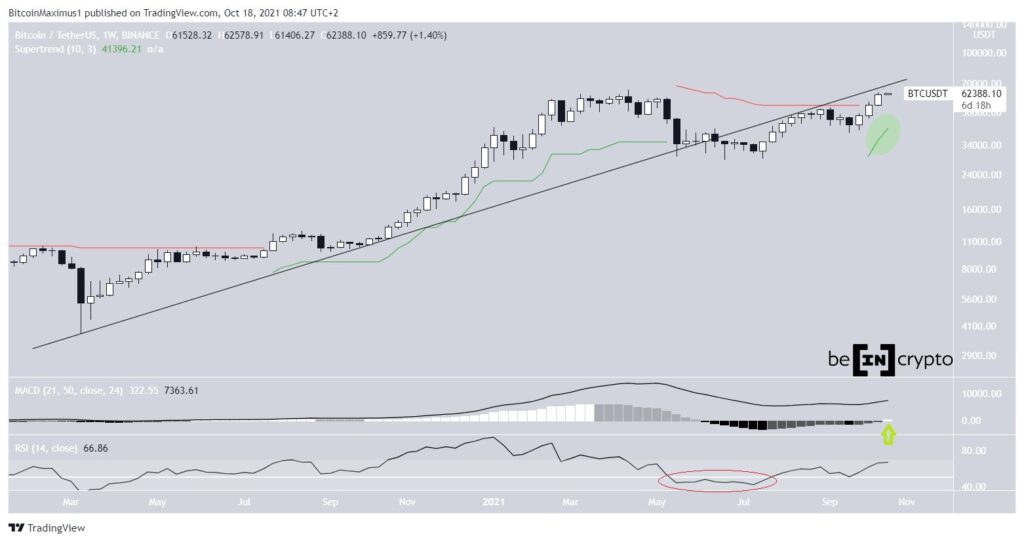 O gráfico semanal do Bitcoin indica uma tendência de alta, que é ainda mais evidenciada nos indicadores técnicos.