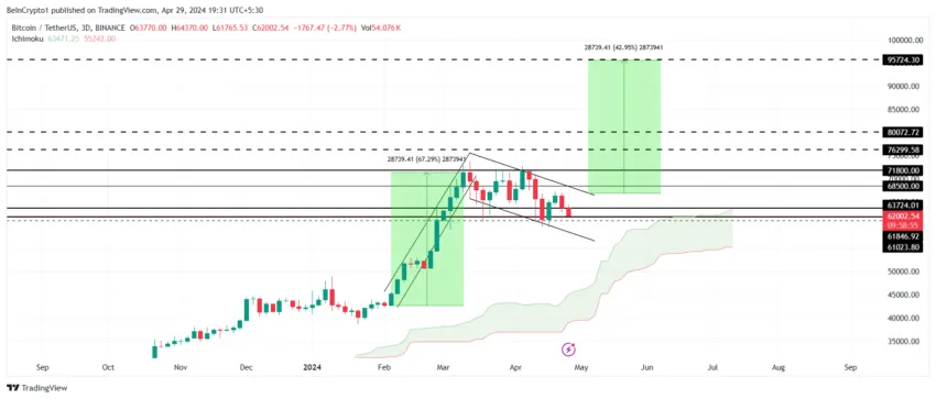 No caso do Bitcoin, provavelmente será uma tendência de alta e, com base na meta obtida pelo padrão, espera-se que o BTC suba mais de 42%. Se esse movimento for bem-sucedido, o ativo poderá acabar atingindo um topo em US$ 95.000.