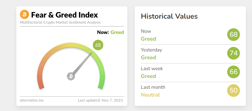 Segundo o site Alternative, o chamado Bitcoin Fear and Greed Index subiu para 74 pontos de 100 na segunda-feira (06). Um nível recorde que não era atingido há mais de um ano, o que é um claro sinal de otimismo entre investidores e traders.