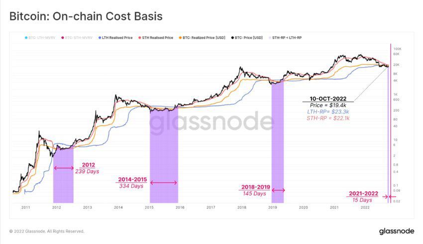 Os dados da Glassnode destacaram que a base de custo on-chain para os Detentores de Curto Prazo do Bitcoin ultrapassou a dos Detentores de Longo Prazo. Isso significa que os compradores nos últimos cinco meses têm uma base de custo superior àqueles que passaram por toda a volatilidade do ciclo 2020-22.