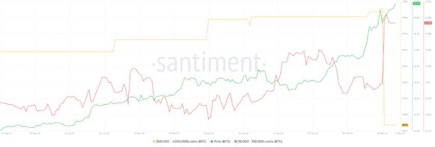 No espaço de um dia, mais de 115.000 BTC no valor de mais de US$ 8,13 bilhões foram vendidos pelos endereços que detinham entre 100.000 a 1 milhão de moedas, que foram adquiridos por investidores de varejo logo em seguida.