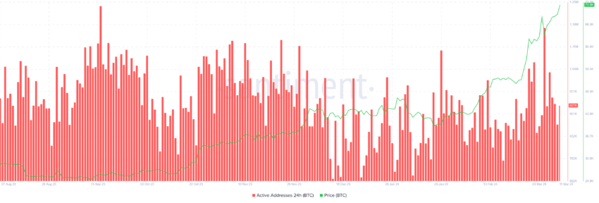 Este apoio dos investidores durou pouco, uma vez que o otimismo destes investidores diminuiu. O declínio nos endereços ativos mostra o mesmo. Os endereços que realizam uma transação vão de 953.000 a 921.000.