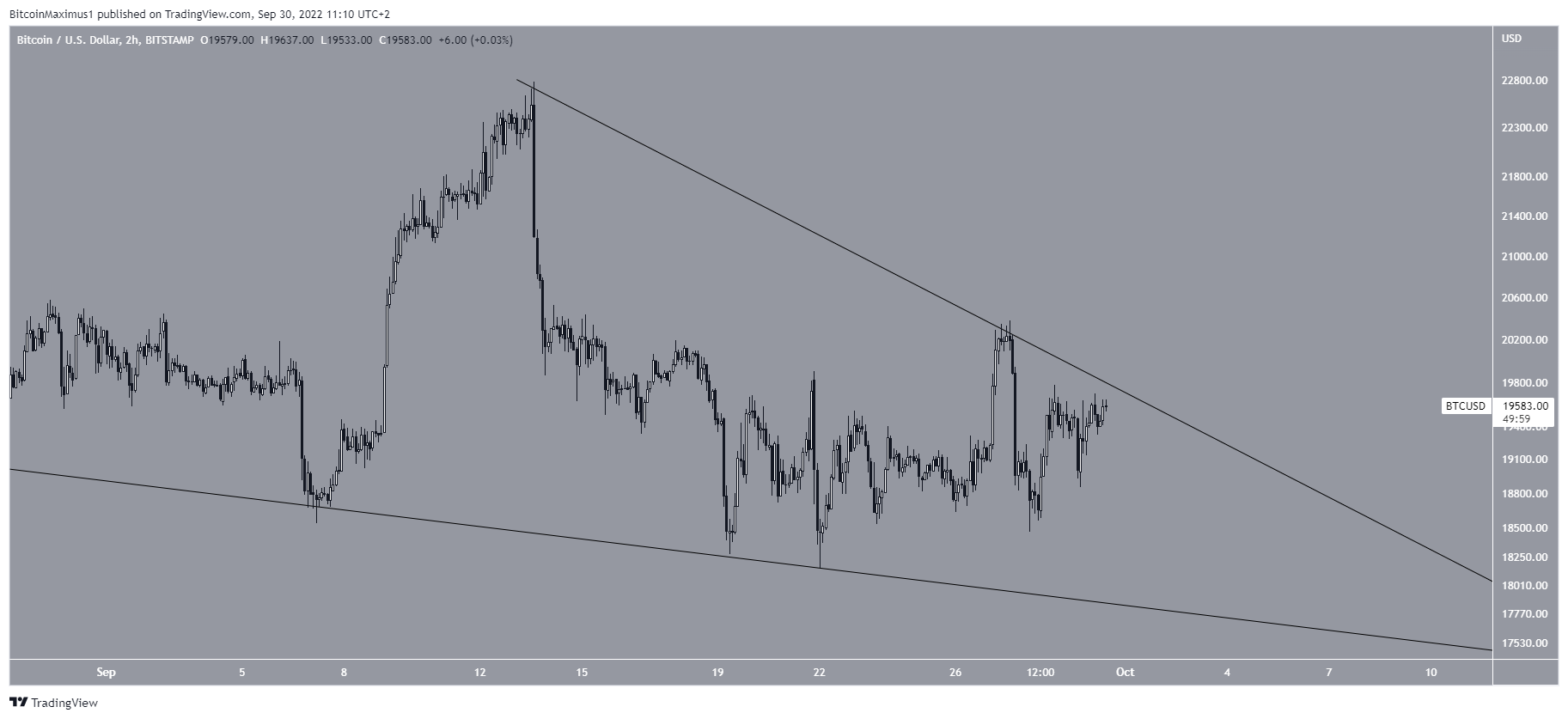 Com todos esses eventos que poderiam ter um efeito negativo no preço, parece impressionante que o Bitcoin tenha conseguido apresentar um desempenho neutro. Além disso, o preço parece estar sendo negociado dentro de uma cunha de baixa, que é considerada um padrão de alta.