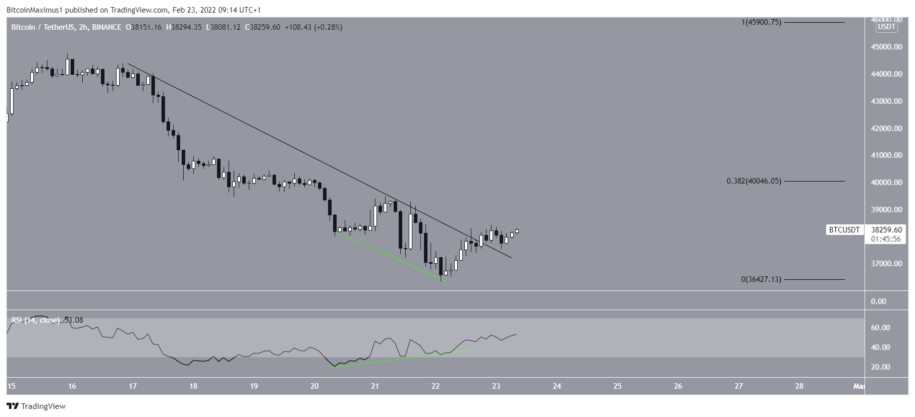 Essa possibilidade é ainda mais apoiada pelo gráfico de duas horas, que mostra que o BTC rompeu uma linha de tendência de baixa após gerar uma divergência significativa de alta. Como resultado, um movimento de alta para US$ 40.050 parece ser o cenário mais provável.