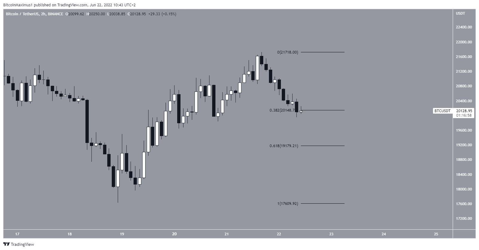 Aproximando-se, o gráfico de duas horas mostra que o Bitcoin está dentro dos níveis de retração de 0,382 – 0,618 de Fibonacci. Esses níveis criam uma área de suporte entre US$ 19.200 e US$ 20.150.