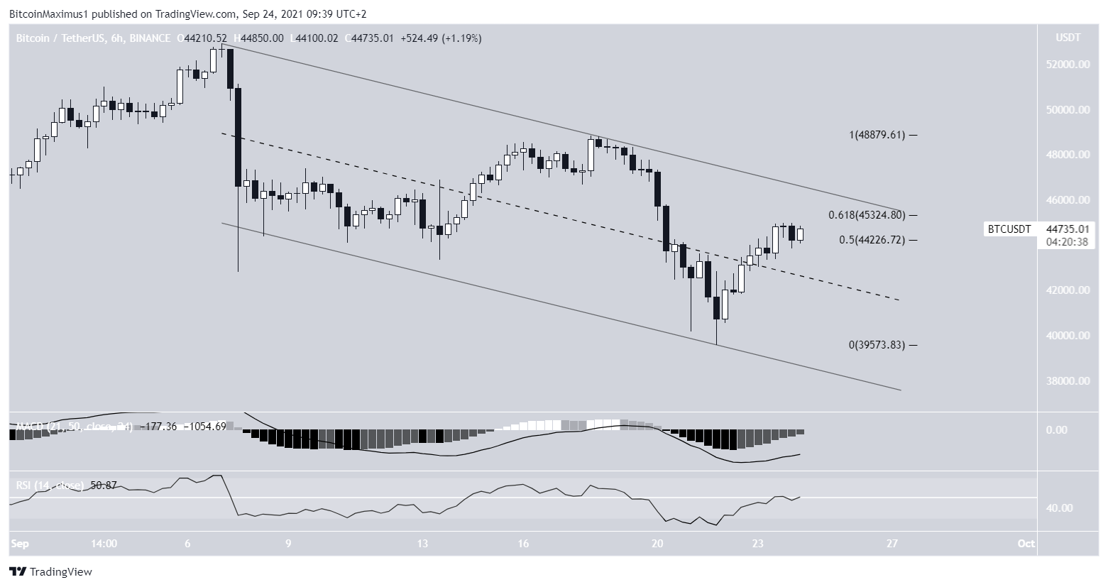 O gráfico de seis horas mostra que o Bitcoin está sendo negociado dentro da parte superior de um canal paralelo de baixa. Esses canais geralmente contêm movimentos corretivos, portanto, um rompimento deste canal é esperado.