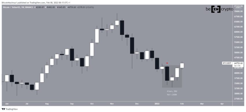 SponsoredSe o ativo conseguir atingir um fechamento acima do preço atual, ele criará um padrão de candle estrela da manhã, que é frequentemente considerado um padrão de reversão para tendências de alta porque toda a queda de 17 a 24 de janeiro seria negada. Portanto, é crucial que o BTC atinja um fechamento semanal acima de US$ 43.070 para concluir esse padrão.