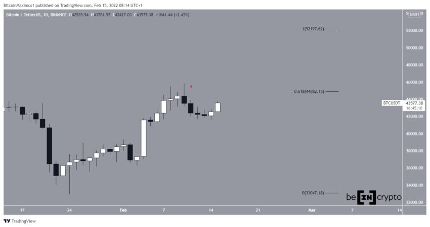 Depois de romper esse canal em 6 de fevereiro, o BTC voltou ao meio do padrão gráfico e o validou como suporte. Esse salto também coincide com o nível de retração de 0,382 de Fibonacci em US$ 41.950.