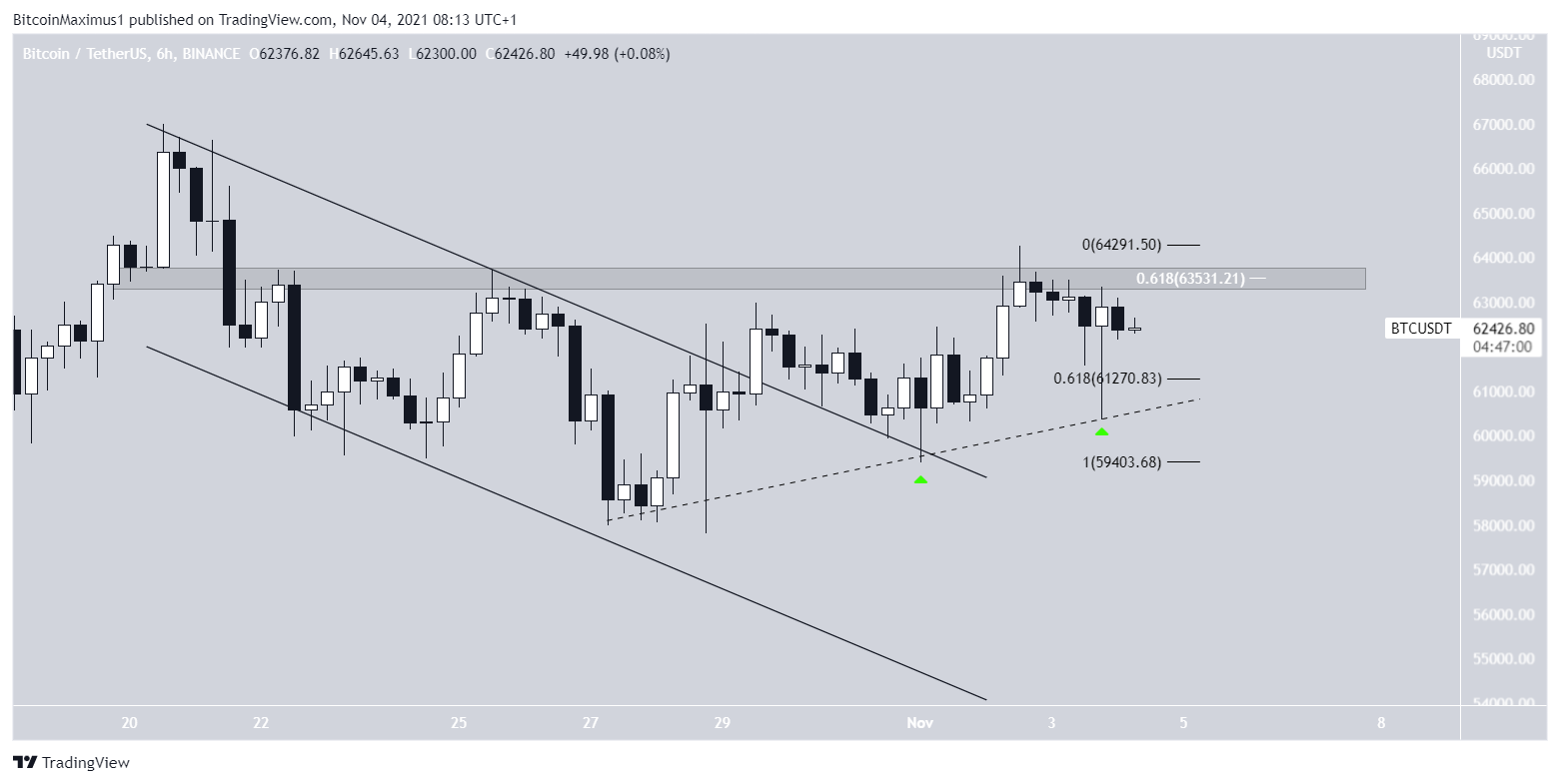 O gráfico de seis horas mostra que o Bitcoin rompeu um canal paralelo de baixa e depois o validou como suporte. Isso indicou que a fase de correção que está em vigor desde a máxima histórica foi concluída.