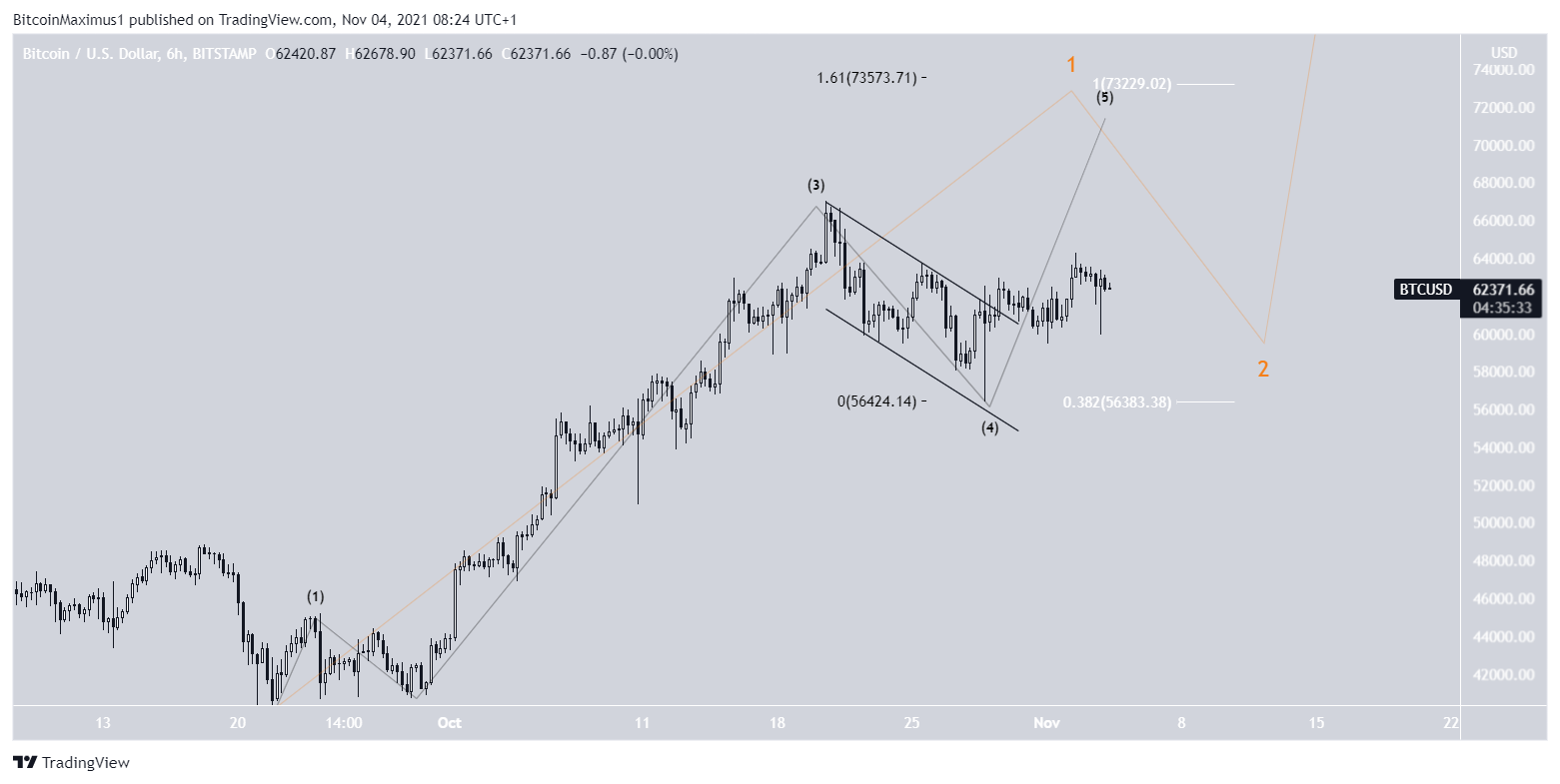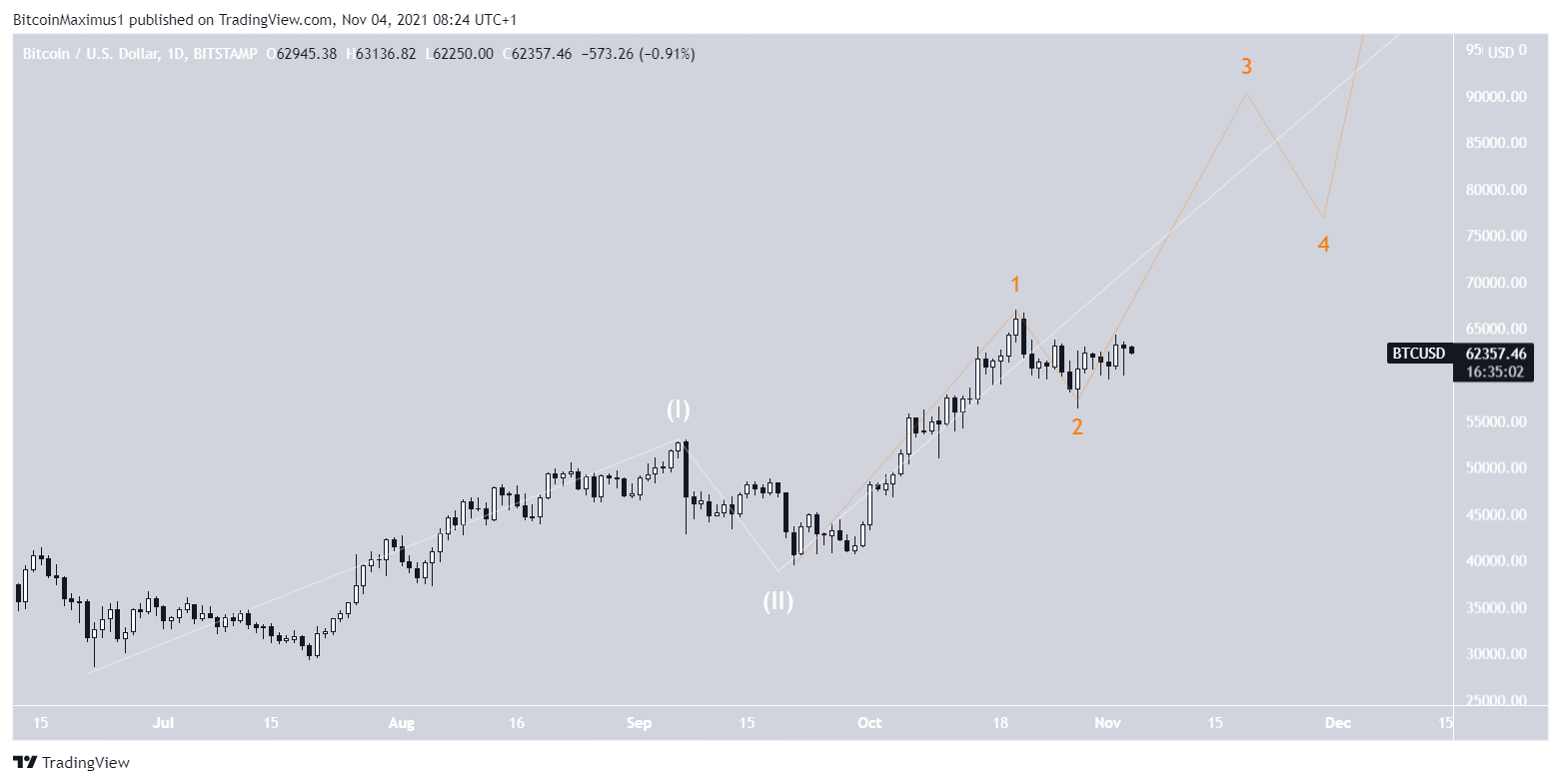 A outra possibilidade sugere que o BTC está em uma formação de onda 1-2/1-2. Neste caso, ele está atualmente na onda três, o que significaria que o movimento de alta poderia acelerar rapidamente. Nessa possibilidade, a criptomoeda poderia alcançar uma nova máxima histórica antes de outra fase corretiva.