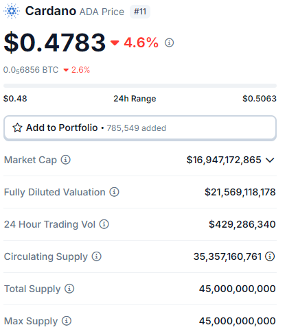 A queda do BTC empurrou diversas altcoins para baixo. Nesse sentido, a Cardano tem tido o pior desempenho diário entre as 15 maiorias criptomoedas em valor de mercado hoje.
