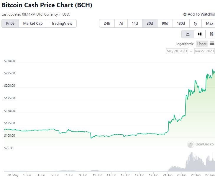 O Bitcoin Cash (BCH) tem sido o maior destaque do mercado de criptomoedas, acumulando uma valorização de 114% na última semana.
