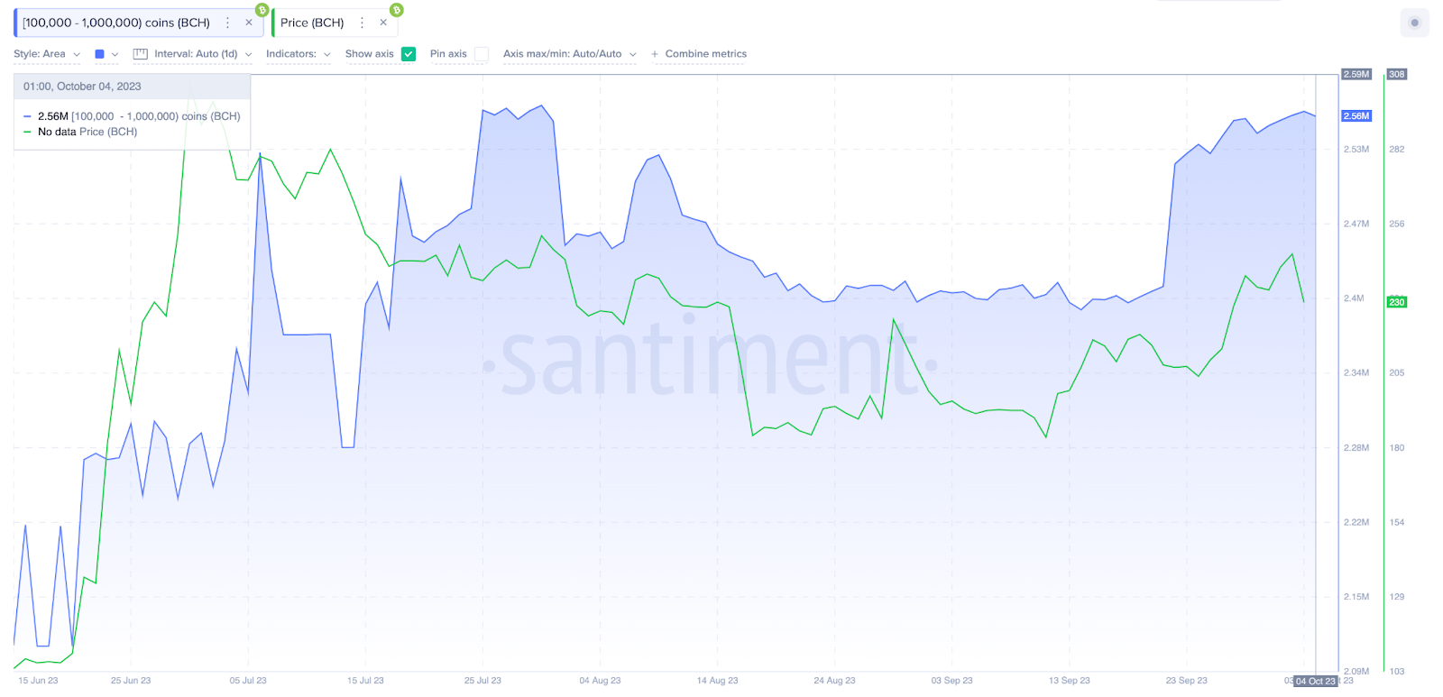 Isto significa que eles exercem uma influência significativa dentro da rede. Evidentemente, o preço do BCH subiu mais de 150% quando eles compraram impressionantes 420.000 moedas entre 19 de junho e 6 de julho de 2023.