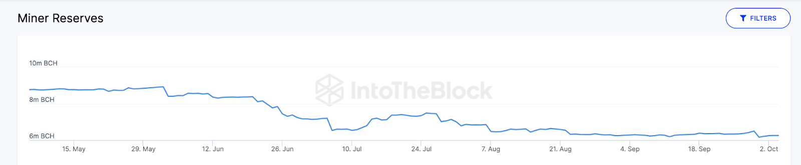Os dados mostram que os saldos acumulados das reservas dos mineradores eram de 6,5 milhões de BCH em 29 de setembro. Mas esse número caiu para apenas 6,25 milhões de BCH em 5 de outubro.