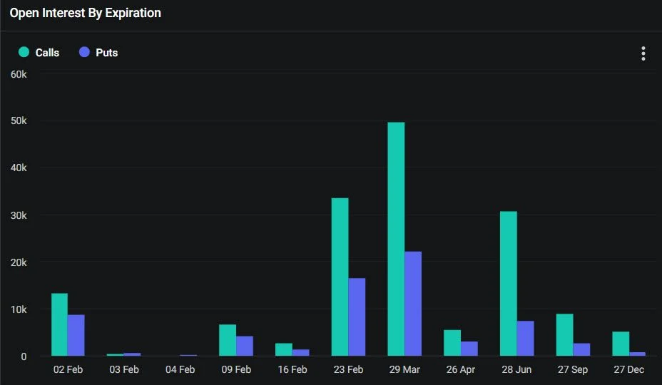 O valor nominal dos contratos de opções de Bitcoin que expiram nesta sexta-feira é de US$ 960 milhões, de acordo com o Greeks Live. A relação put/call é de 0,66, o que significa que existem mais opções de compra do que opções de venda.