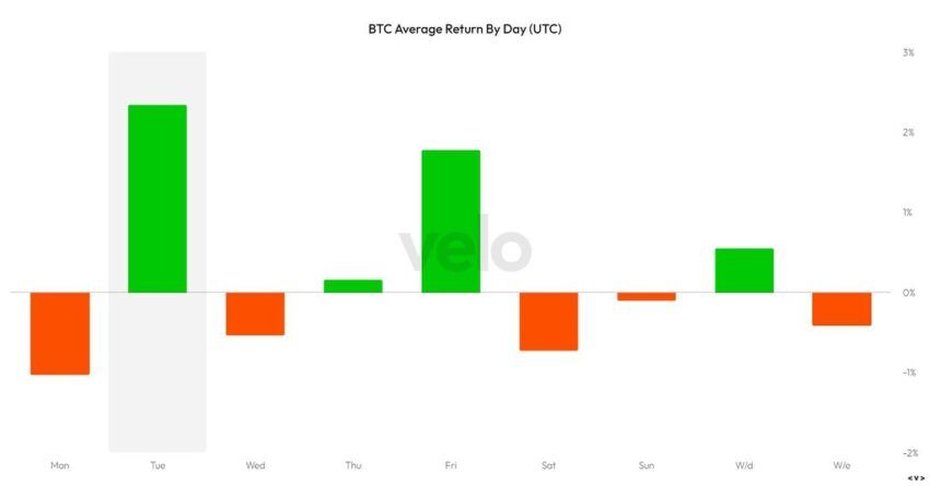 A questão da temporalidade dos investimentos é ainda mais relevante para horizontes temporais mais curtos. De fato, os dados compartilhados pelo especialista em análise técnica Will Clemente mostram que terça-feira é o melhor dia da semana para investir em BTC.