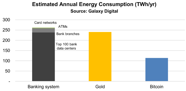 Os autores não negam o argumento de que o Bitcoin consome muita energia, mas garantem que este é o fator principal que permite que a rede seja segura e robusta. Segundo os cálculos da Galaxy Digital, o consumo anual de eletricidade do Bitcoin é estimado em 113,89 TWh/ano. Em comparação, a soma do consumo de eletrodomésticos que sempre estão ligados, nos Estados Unidos, é de 1.375 TWh/ano, ou seja, 12,1 vezes maior que o do Bitcoin.
