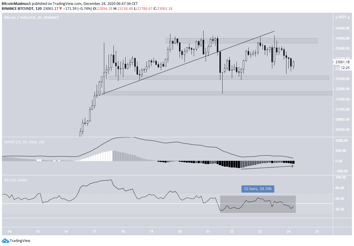 O período de duas horas oferece dois níveis de suporte em $ 22.400 e $ 21.800.