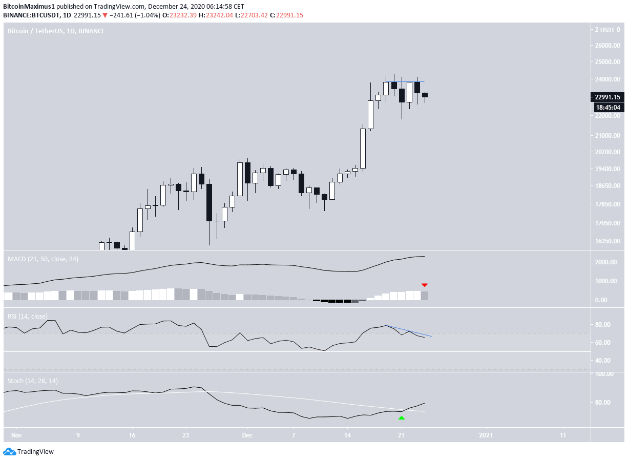 SponsoredOntem, o preço do BTC atingiu uma máxima de $ 24.100 em outra tentativa de atingir um novo recorde histórico. No entanto, os preços mais altos não puderam ser sustentados. O BTC foi rejeitado rapidamente e voltou a cair para US $ 22.600.