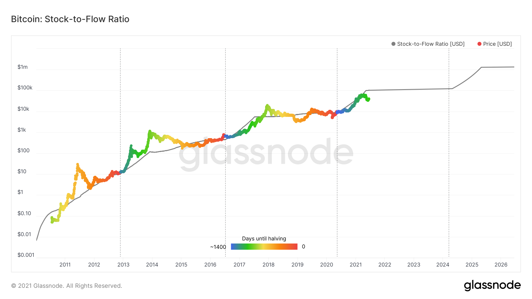 O modelo Stock-to-Flow popularizado por @100trillionUSD e remonta ao clássico livro “The Bitcoin Standard” de Saifedean Ammous.
