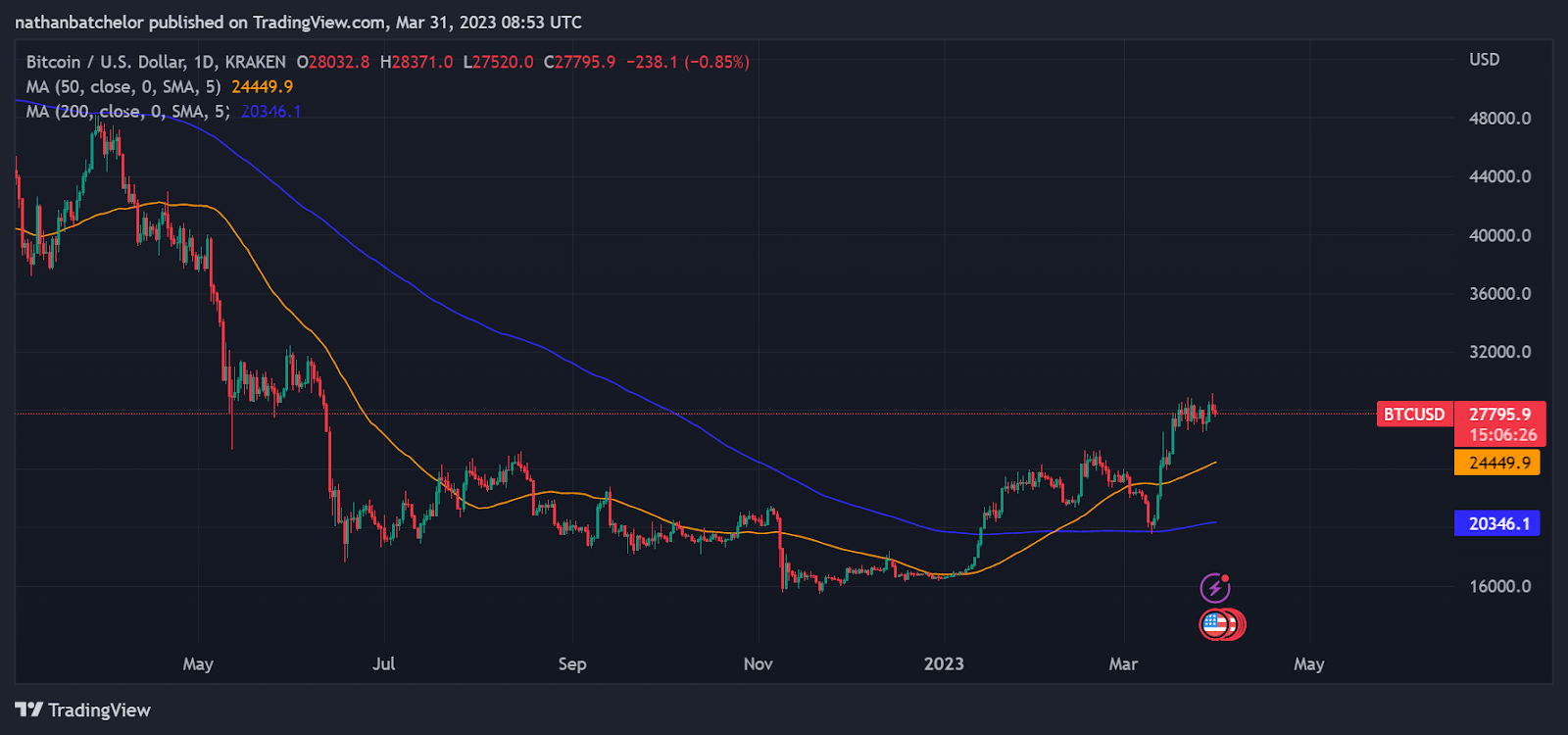 O Bitcoin deve fechar o primeiro trimestre fiscal com seu melhor desempenho de três meses em quase dois anos, já que seu preço parece prestes a fechar o segundo trimestre de 2023 com um aumento de preço de aproximadamente 70%.