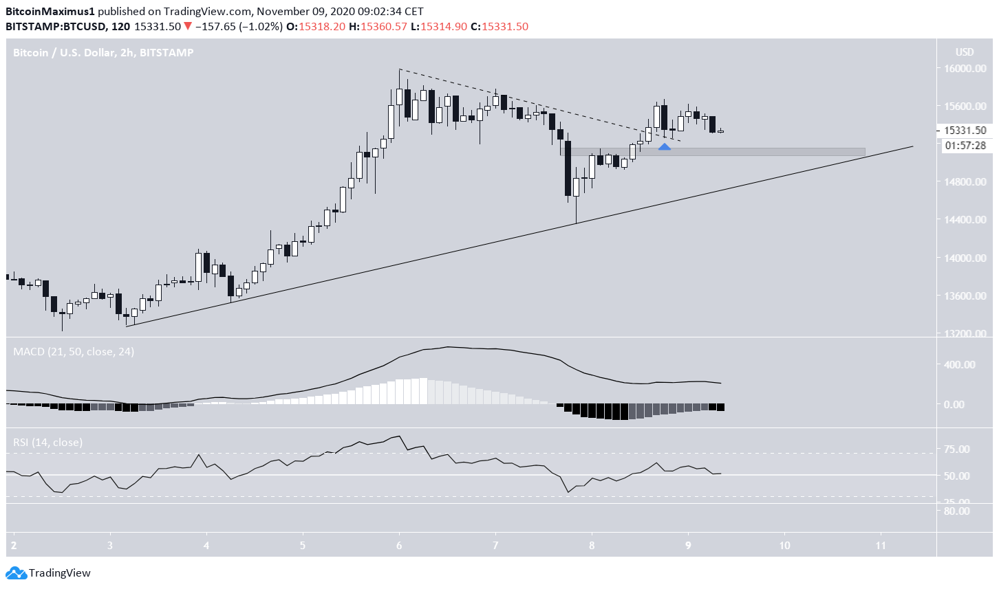 Isso cria a possibilidade de que o BTC esteja seguindo uma linha de suporte ascendente, que atualmente coincide com a área de suporte menor de $ 15.100.