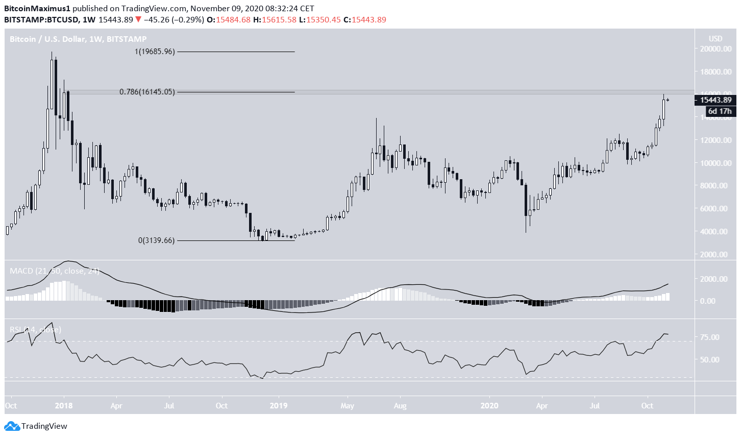 O preço do Bitcoin (BTC) aumentou consideravelmente durante a semana de 1 a 9 de novembro, quase atingindo um nível crucial de resistência de longo prazo em $ 16.150.
