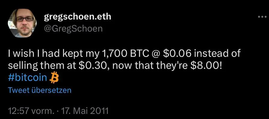 Um, por exemplo, lamenta de ter vendido 1.700 BTC pelo preço unitário de 0,30 dólares ao ver que a criptomoeda chegou ao patamar de US$ 8 em 2011.