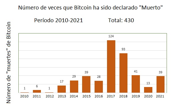 Ao avaliar os dados de uma forma mais ampla, pode-se ver que 2021 não é exceção. Desde 2010, o Bitcoin foi assassinado 430 vezes.