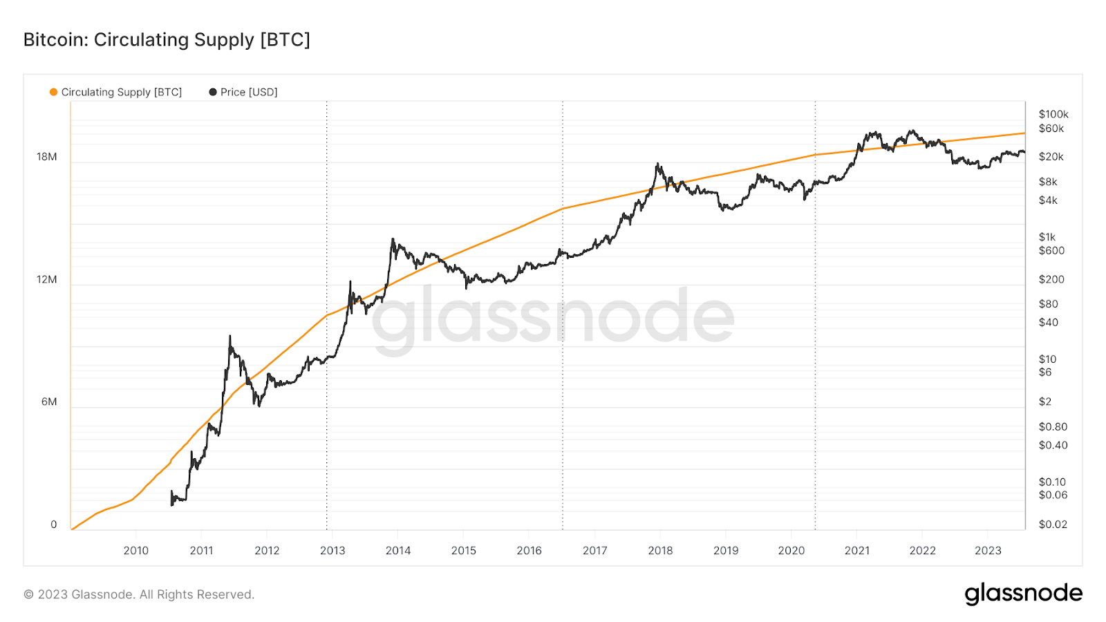 Vale acrescentar que o gráfico de oferta de Bitcoin acima é frequentemente modificado por moedas que são consideradas perdidas. Por definição, as moedas perdidas são aquelas que não se movem há pelo menos 7 anos.