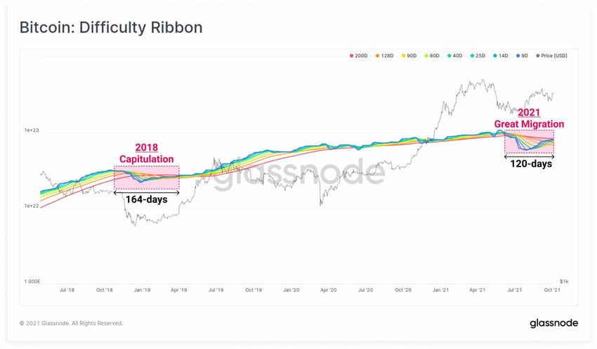 No contexto de uma recuperação da taxa de hash, o analista da rede @Negentropic_ tuitou um gráfico da faixa de dificuldade. Ele afirma que o indicador “em breve sinalizará uma recuperação positiva, à medida que mais mineiros voltem a ficar online”. Ele chama esse processo de “grande migração”.