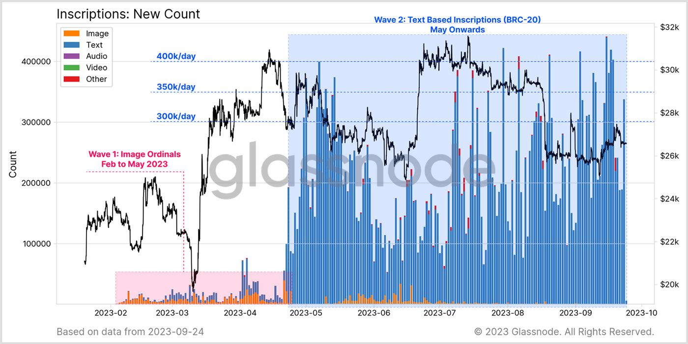 SponsoredEm seu relatório “semana on-chain” de 26 de setembro, o provedor de análises Glassnode investigou se o Ordinals e as inscrições estavam substituindo as transferências monetárias.