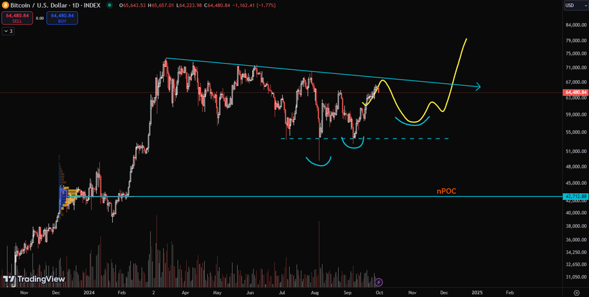 Apesar de ultrapassar US$ 66 mil na sexta-feira e recuar para US$ 64.291 até o momento, os analistas sugerem que o Bitcoin pode estar ganhando força para uma recuperação em outubro.