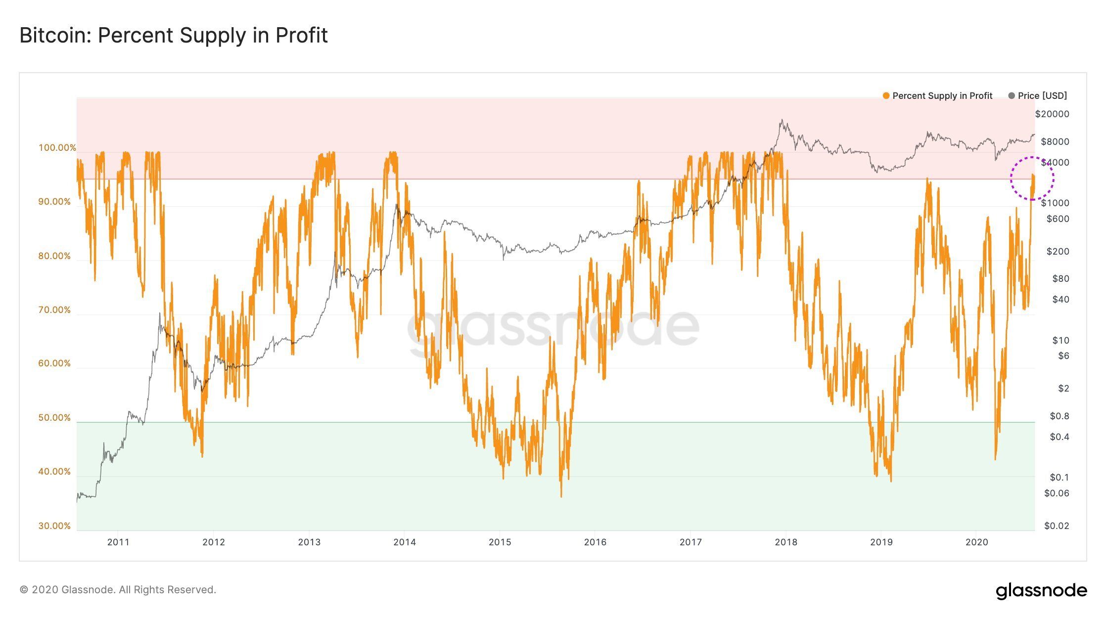 Os dados apontam que da última vez que os BTCs no lucro chegaram a tanto, o mercado engatou um rali que culminou no preço próximo de US$ 20.000, em dezembro de 2017.
