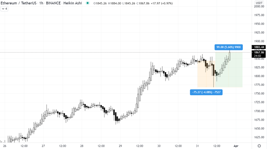 Deixando isso de lado, a entrada no mês de abril parece brilhante para o mercado, com a capitalização total das criptomoedas se aproximando da marca histórica de US$ 2 trilhões. Se o bitcoin se comportar, os próximos dias podem desencadear novas altas.