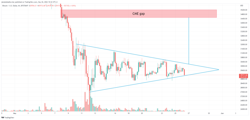 O trader de criptomoedas @CryptoMichNL desenhou uma formação semelhante de triângulo simétrico no Twitter. Ele escreveu que “um rompimento está chegando relativamente em breve para o #Bitcoin”. Ele então acrescentou que o gatilho para uma ação positiva de preços poderia ser uma queda na inflação ou um aumento nos pedidos de auxílio-desemprego dos Estados Unidos.