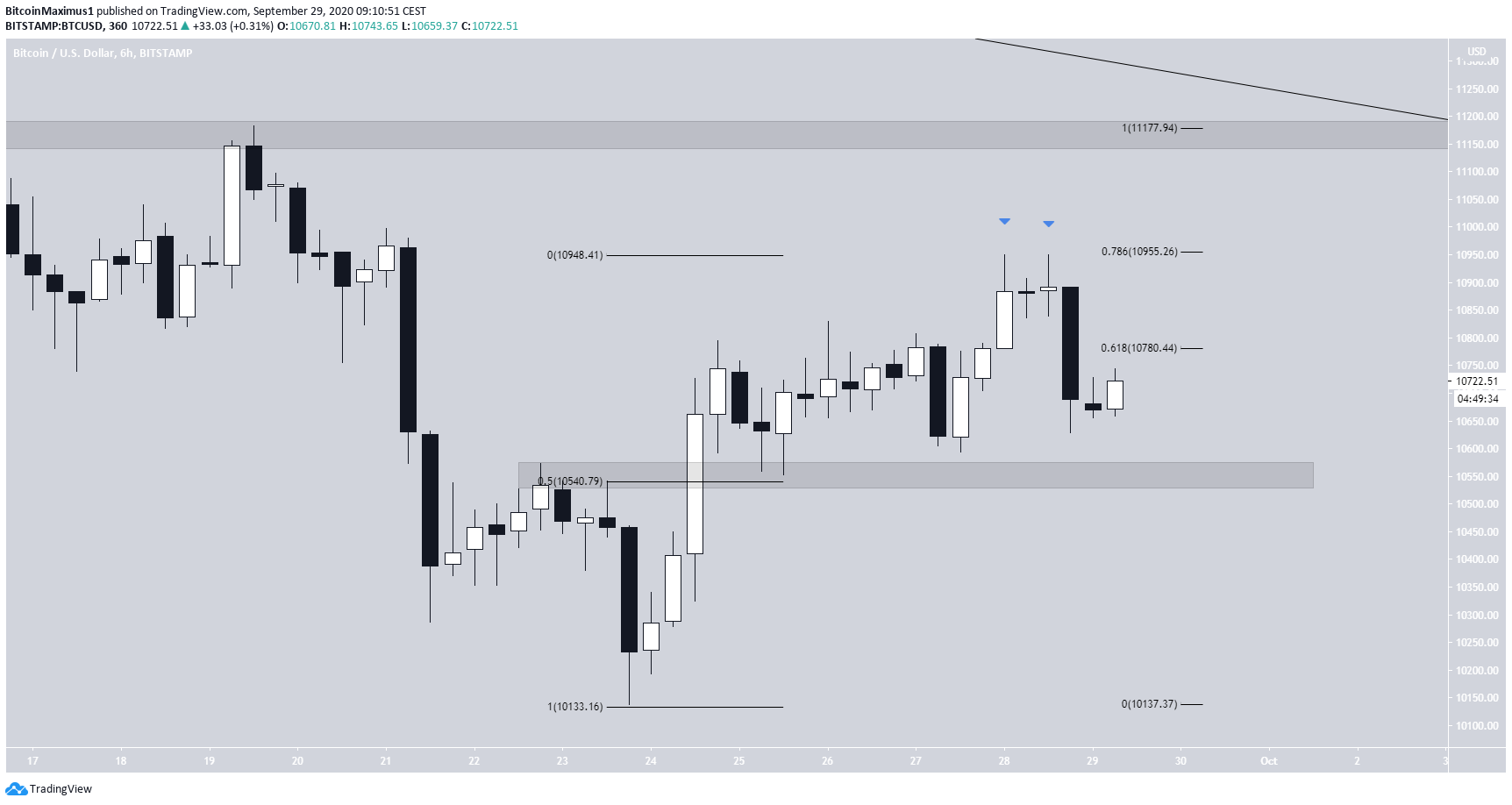 O gráfico de curto prazo mostra que o preço foi rejeitado duas vezes pelo nível de 0,786 de Fibo da queda anterior em $ 10.955 e começou a recuperar.