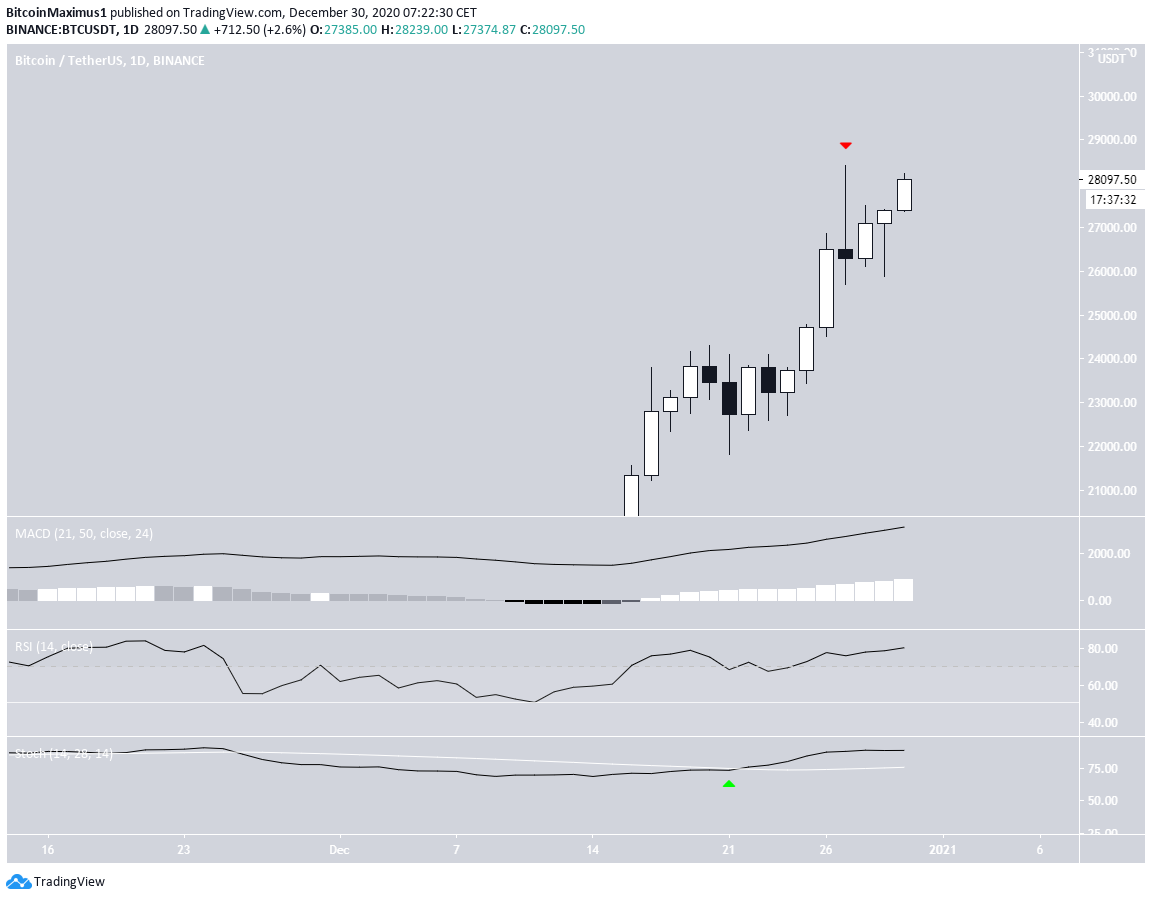 O Bitcoin (BTC) recuperou todas as suas perdas em 27 de dezembro e atualmente está fazendo mais tentativas de atingir novas máximas.