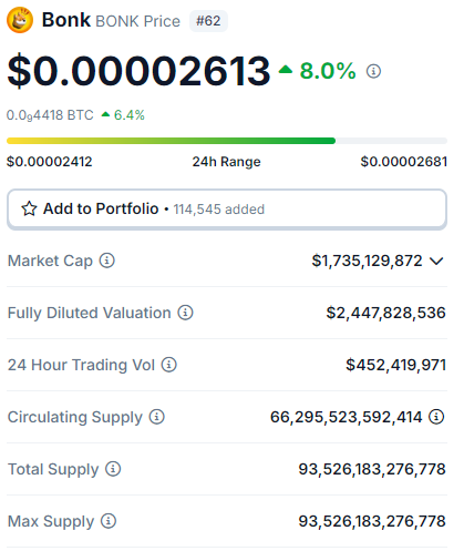 De maneira geral, a Bonk está na dianteira do mercado. Com uma alta de mais de 8% hoje, ela se mantém entre as melhores criptomoedas em termos de valorização.