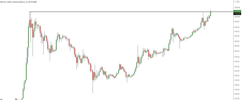 Parece estar longe de ser um recorde de alta de todos os tempos o valor de US$ 1.163, mas este foi o início do último grande período de alta que o Bitcoin desenvolveu, o período de alta que agora expirou.