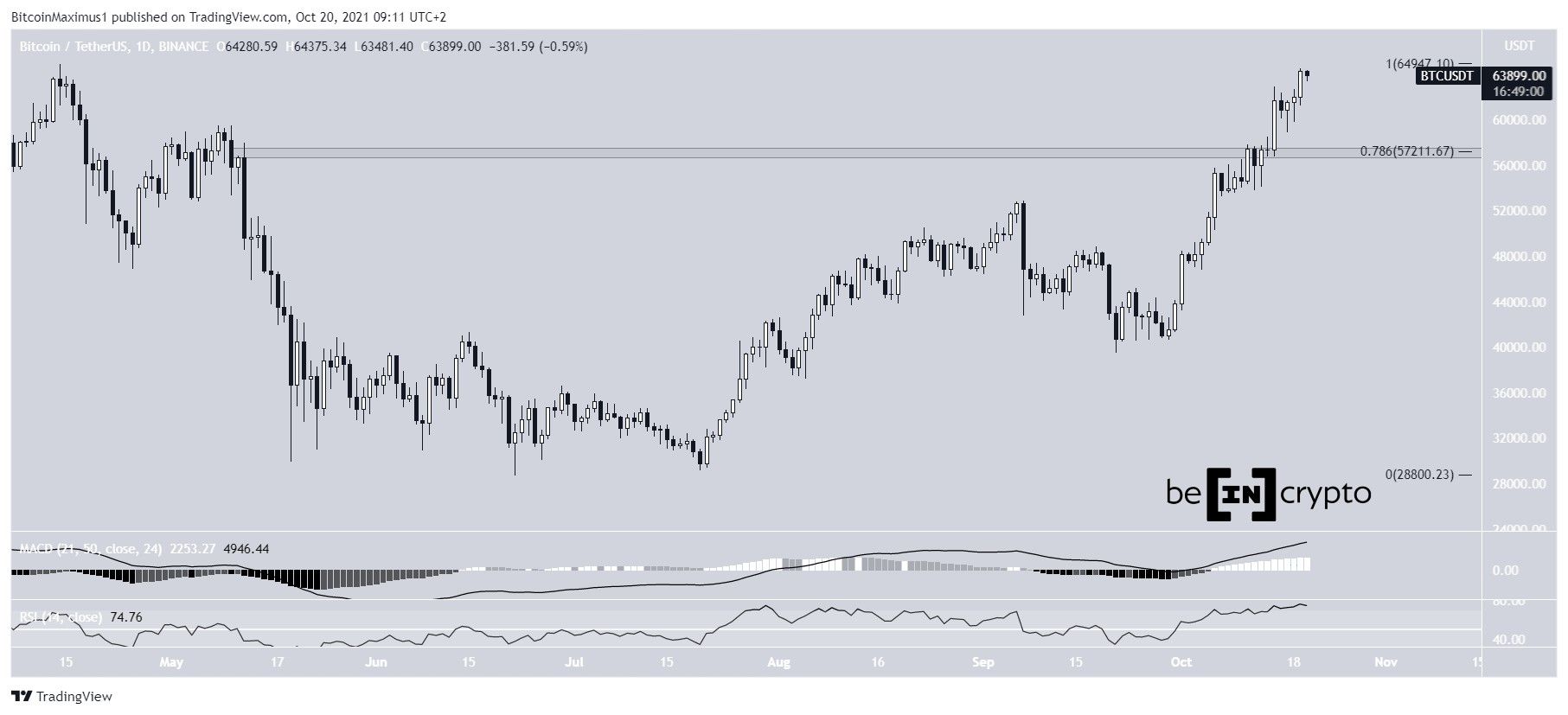 Até agora, o BTC atingiu uma alta de US$ 64.486 na terça-feira (19). Isso é cerca de US$ 400 abaixo do preço recorde atual de US$ 64.854. Os indicadores técnicos no gráfico diário também são de alta.