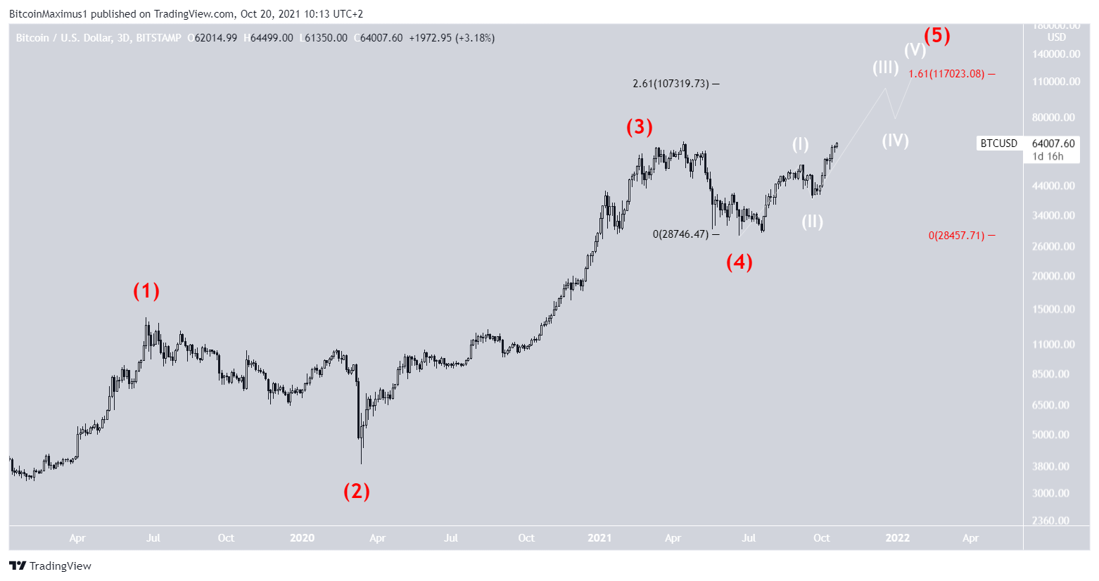 SponsoredQuanto à contagem de longo prazo, o BTC também parece estar na onda cinco (vermelho) de um impulso de alta que começou em dezembro de 2018. Portanto, a tendência de alta já existe há quase três anos. A contagem de sub-ondas é mostrada em branco.