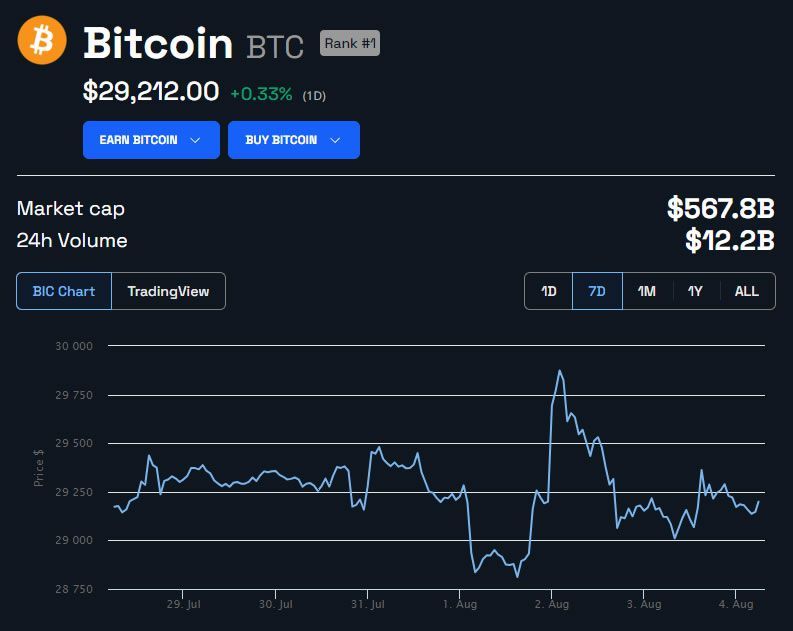 O Bitcoin teve uma movimentação de preço discreta essa semana. Atualmente, está negociado em US$ 29.212, tendo feito muito pouco nas últimas 24 horas.